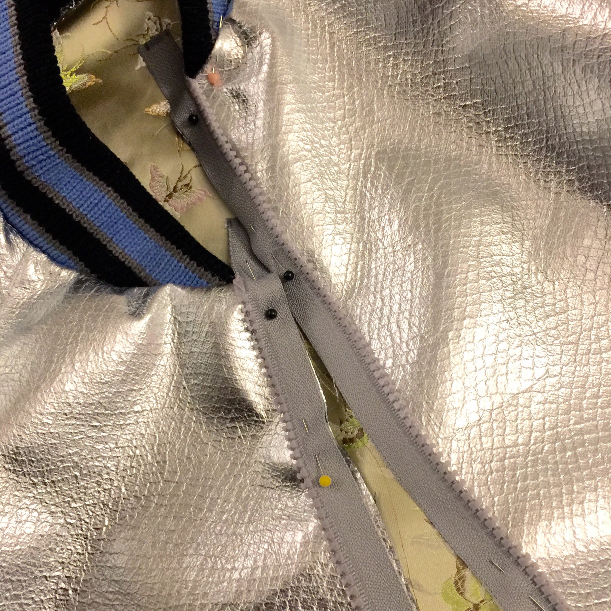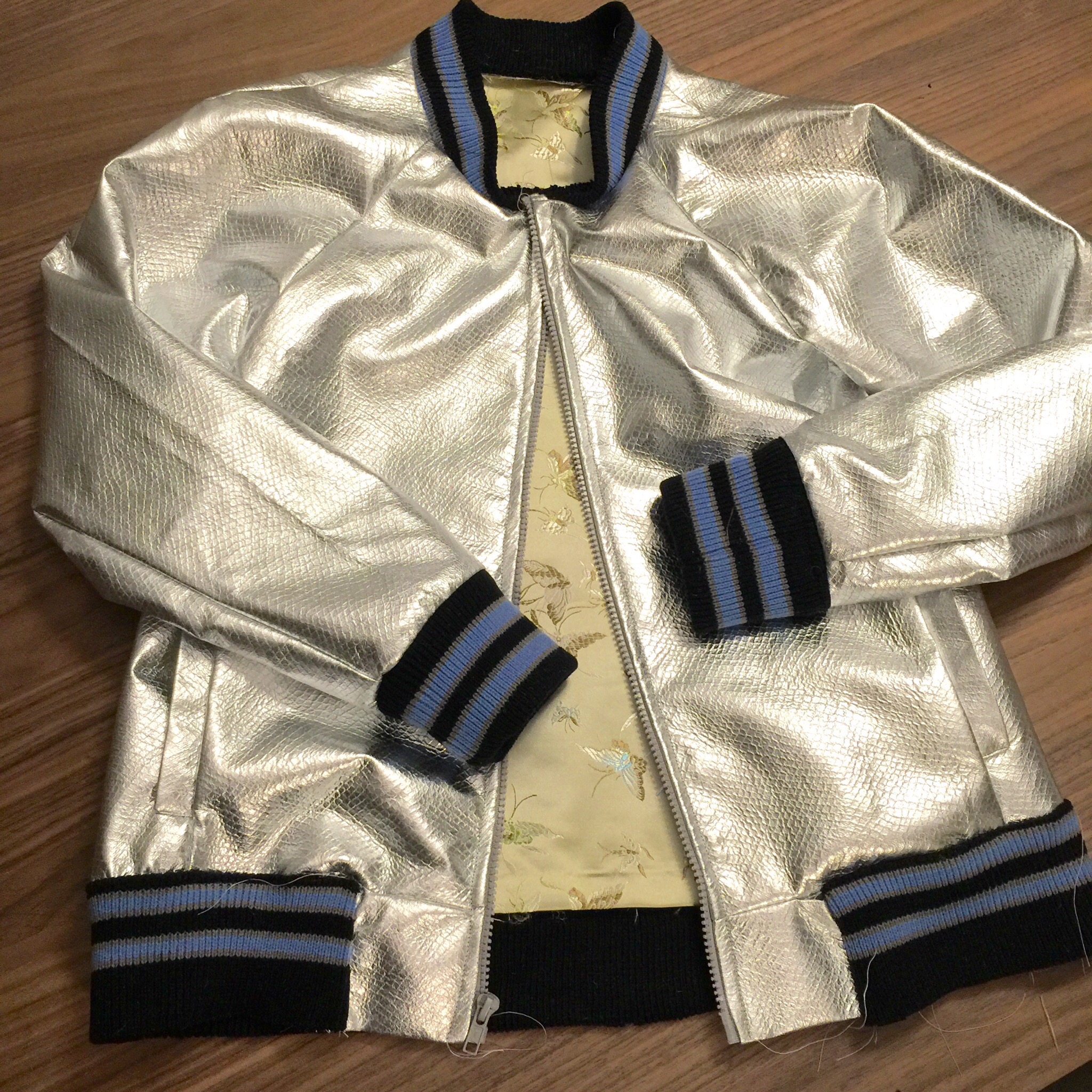 This project was all the more special because the jacket lining, a Chinese brocade satin butterfly fabric, was salvaged from the lining of the table runners I made for my wedding guest registration table. I came very close to donating this fabric during my Marie-Kondo craze (good thing this fabric “sparked joy”).