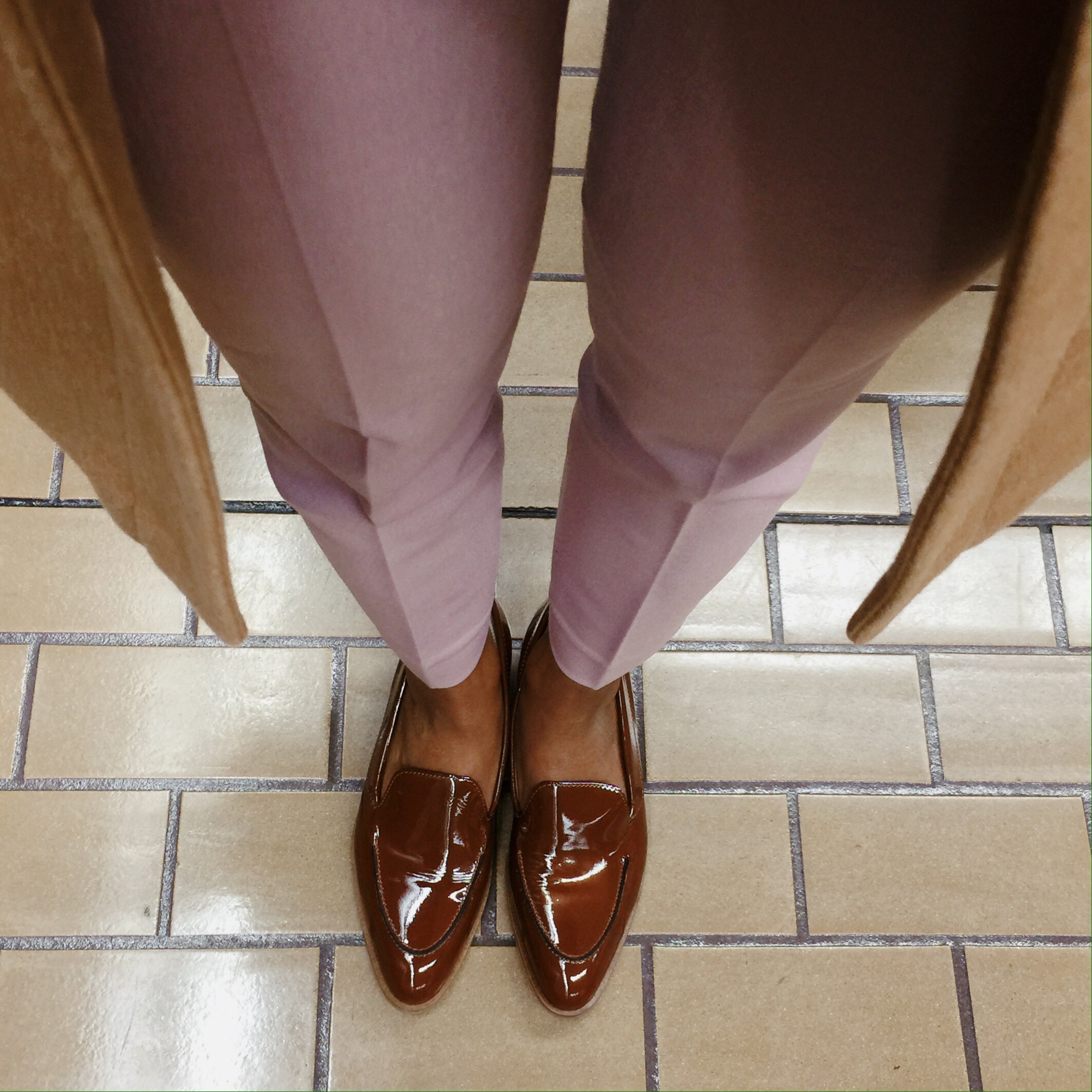 Keep these pastels more feminine by paring with neutrals like this camel coat by J. Crew and caramel patent loafer by Everlane.