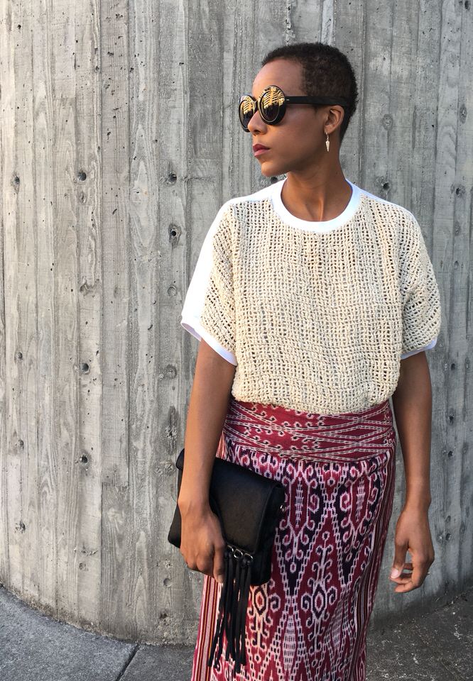 - Lacson Ravello Cruz Top – Oakland based designer and friend Kristina Lacson McConnico has taken a basic sweatshirt and given it an unexpected twist. Literally. The front mesh is made from raw silk sourced from a local supplier. (shop) here and also see Two ways to Style the Cruz Top in my blog post here.